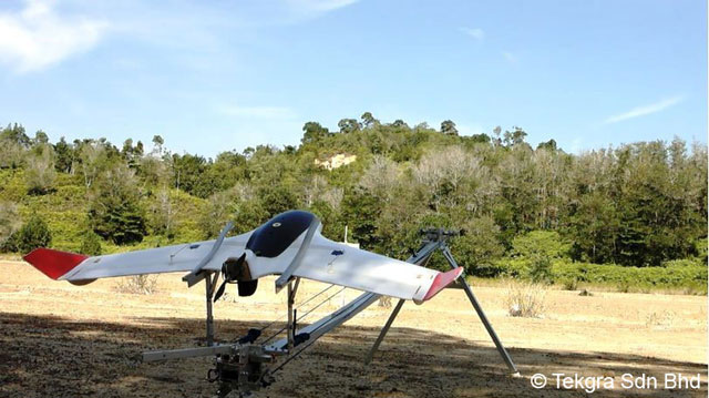 One of our smaller UAV drones, popular for plantations and development flying. It has a wingspan of 3 feet, weights 1.5kg and flies for 30 minutes. Inside its body, it carries a compact camera like Canon Powershot with optional one-axis stabilisation. The coverage per flight is between 150 to 200ha, depending on flying altitude and camera settings. It comes with its own autopilot and GPS. Telemetry and GPS tracker can also be carried if required. This is a one-piece design with non-detachable wings, making this model particularly durable in crashes or hard landings. The picture here shows the S3 drone mounted on a Tekgra-designed aluminium launcher. A parachute landing system is also available. Made from ply and balsa wood with film covering, it can carry a camera payload of 2kg plus another 1kg of fuel for its nitro engine. The endurance is 45 minutes. It needs a runway for take-offs and landings. It has a special, detachable compartment to carry camera, video recorders or other stuff. The camera can also be mounted sideways for oblique shots and controlled with a FPV camera. We used it to carry a Nikon or Sony full-frame digital camera with a 50mm prime lens, which takes super-sharp pictures from the air. Due to its configuration and weight, the N1 requires an experienced flier to operate. Further information and news feed about our drones at work can be found here